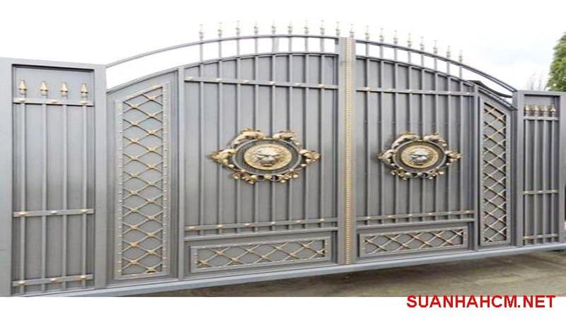Mẫu cửa cổng sắt kết hợp trang trí họa tiết